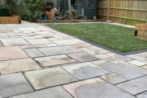 Patio work covers natural stone, concrete slabs, block paving, and porcelain tiles. We build patios to suit any garden size and budget. Existing patios can be cleaned, repaired, or completely replaced.